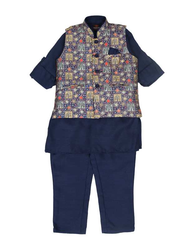 Albion Kids Boys Navy Blue Kurta Pyjama