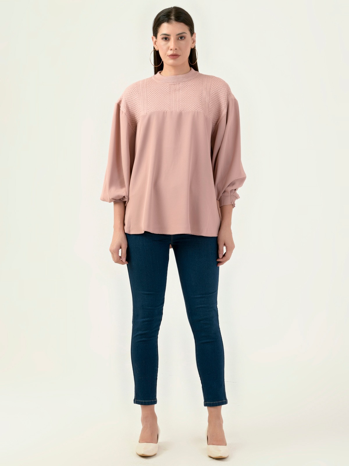 Albion Women Smart Premium Peach Blouson Top