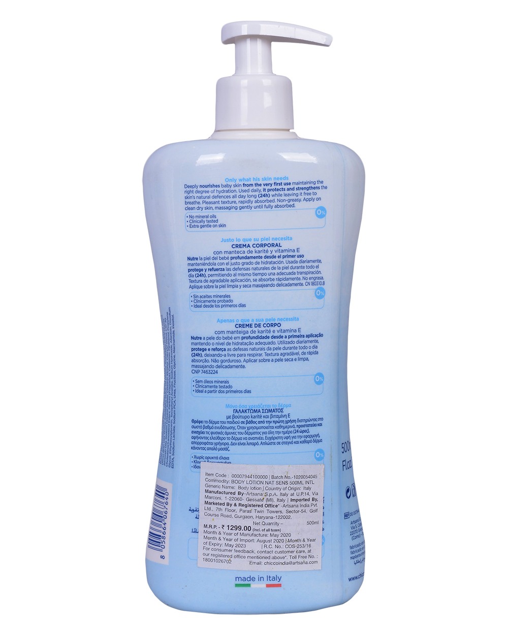 KIDS BABY LOTION CHICCO BODY LOTION NAT SENS 500ML INTL
